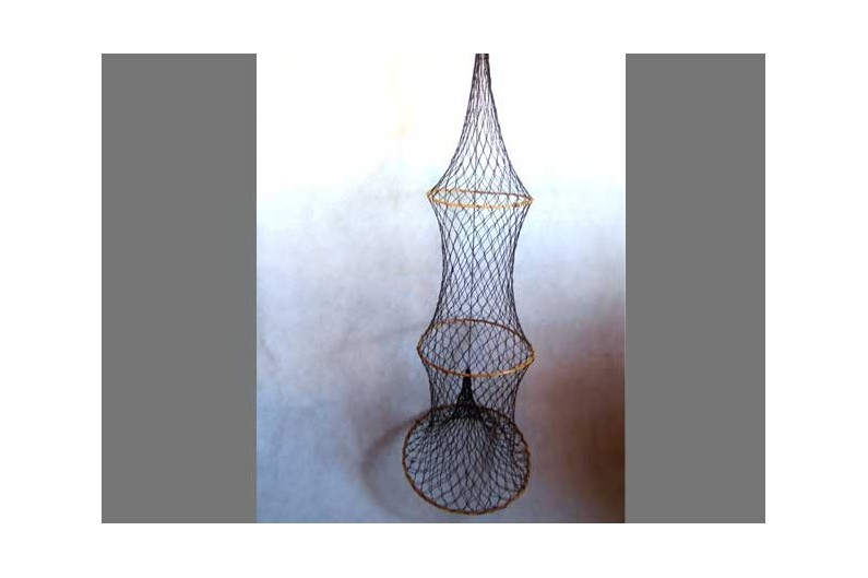 Naso a fisarmonica realizzato con rete da pesca e 5 anelli in vimini. Ampiamente usato negli stagni, in particolare per la pesca al siluro e nel Mediterraneo per pesci di fondo e granchi. Bellissimo oggetto decorativo per creare un'atmosfera marina.