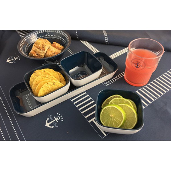 Set di snack composto da 3 ciotole e un vassoio, dal bellissimo design.