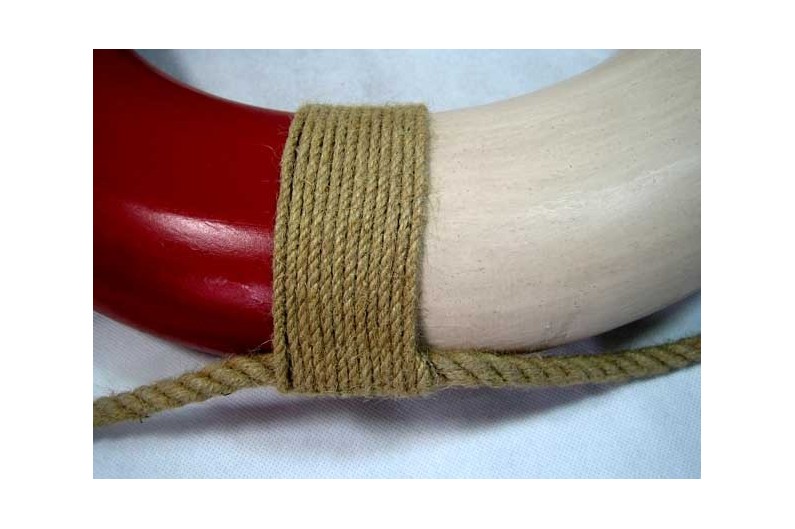 Riproduzione di salvagenti in stile rustico, oggetto ideale per la decorazione marina. Realizzato con schiuma porosa all'interno.
