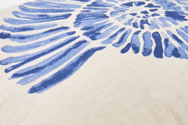 Almofada + recheio com concha de alta qualidade, fundo bege.