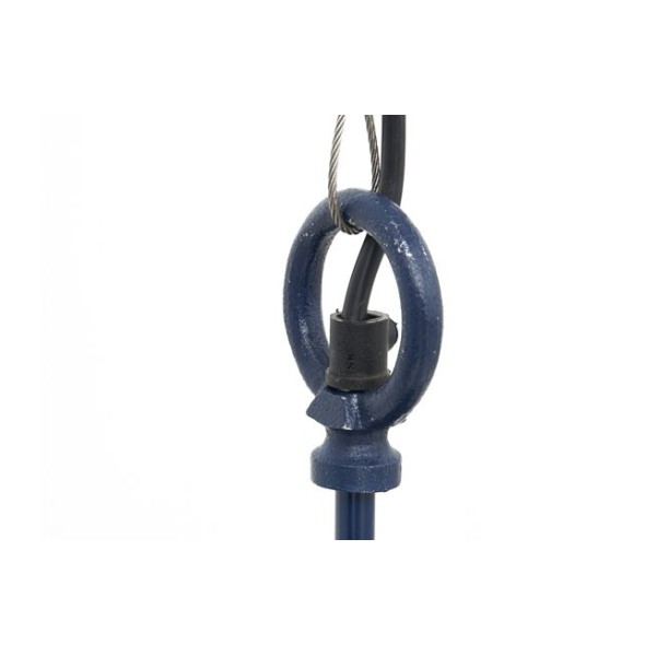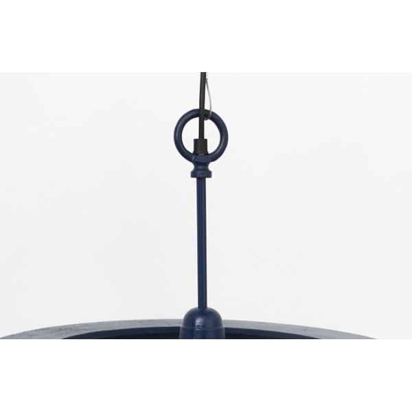 Candeeiro de teto em metal pintado de azul constituído por um abajur translúcido. Funciona com 220v. E27.