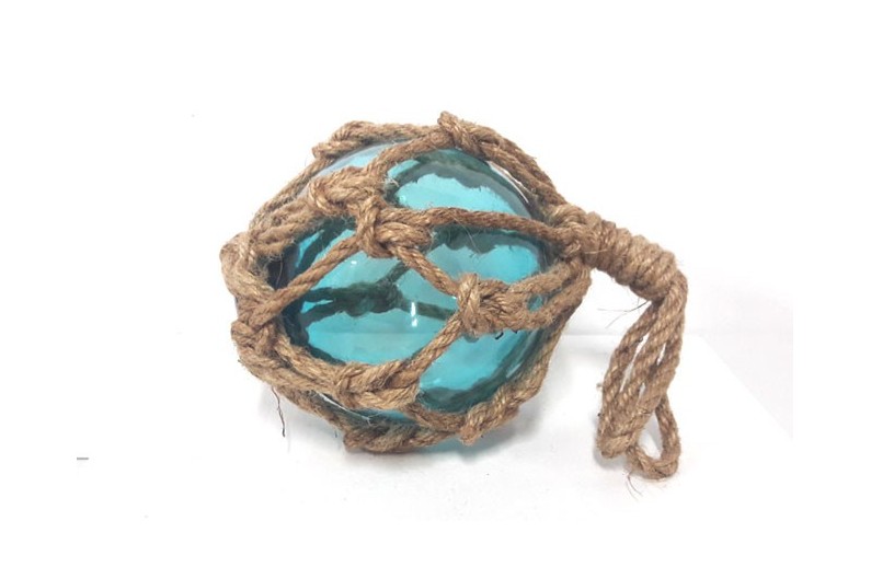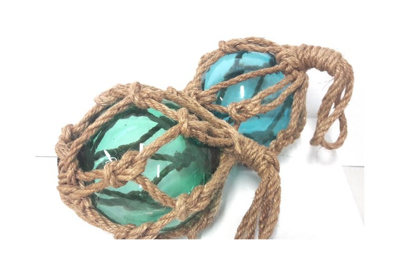 Set 2 Bóia de pesca de vidro. A bóia de pesca era um velho carro alegórico que consiste em uma esfera de vidro envolto em uma corda trançada. Foi usado até a década de 50. Tal foi fixado em flutuadores de redes de pesca para que eles permaneçam na superfície como eles andaram a jusante. Um objeto que dão um toque decorativo oceano.