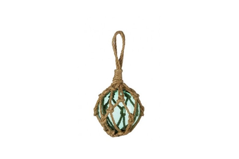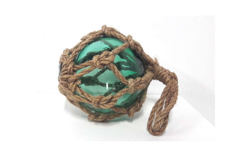 Set 2 Bóia de pesca de vidro. A bóia de pesca era um velho carro alegórico que consiste em uma esfera de vidro envolto em uma corda trançada. Foi usado até a década de 50. Tal foi fixado em flutuadores de redes de pesca para que eles permaneçam na superfície como eles andaram a jusante. Um objeto que dão um toque decorativo oceano.