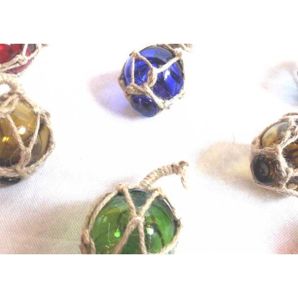 Variedade 12 bóias de cores. A bóia de pesca era um velho carro alegórico que consiste em uma esfera de vidro envolto em uma corda trançada. Foi usado até a década de 50. Estes carros alegóricos foram fixados em redes de pesca para que eles permaneçam na superfície como eles andaram a jusante.