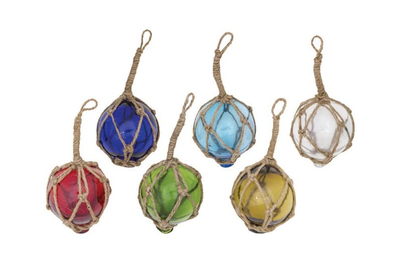 Variedade 6 bóias de cores. A bóia de pesca era um velho carro alegórico que consiste em uma esfera de vidro envolto em uma corda trançada. Foi usado até a década de 50. Estes carros alegóricos foram fixados em redes de pesca para que eles permaneçam na superfície como eles andaram a jusante.