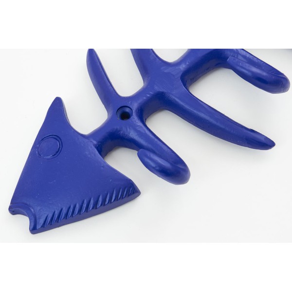 Cabide em forma de espinha de peixe, em metal e cor azul o verde.