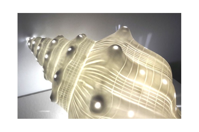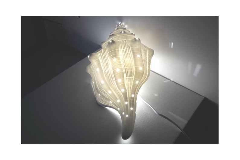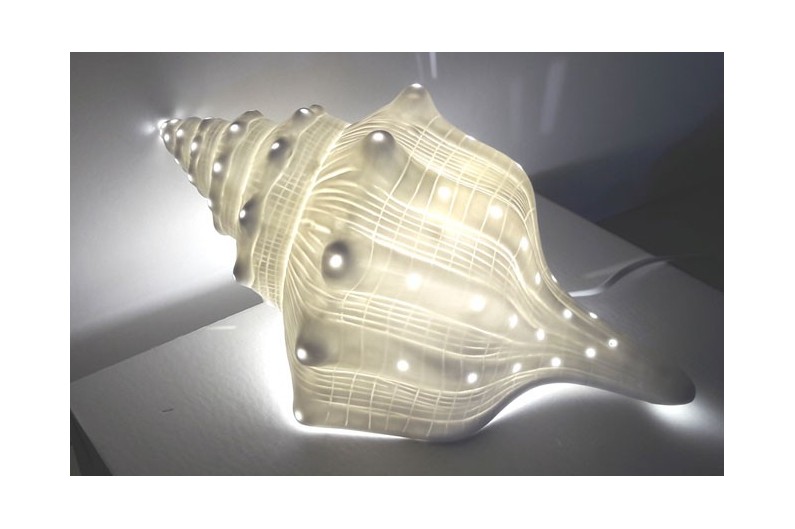 Candeeiro Caracola da porcelana translúcida. Bonito Candeeiro marinha que difunde uma luz quente, ideal para a atmosfera íntima e relaxante.