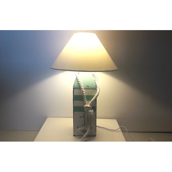 Candeeiro com pé de baliza decorativa feita de madeira de pinho. Feitos e pintados à mão.