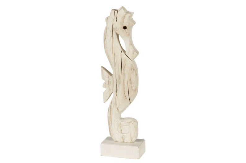 Estatueta de cavalo marinho esculpida à mão em madeira. O cavalo-marinho representa calma e paz em um lar.