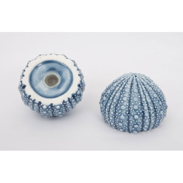 Salteador de sal e pimenta de cerâmica em forma de ouriço do mar.