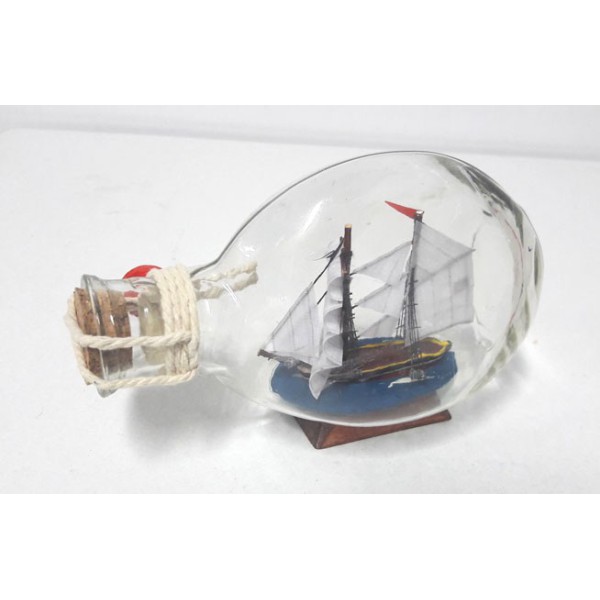 Barco em garrafas do 13,5cm qualidade da madeira esculpido, pintado e selado com cera. Ideal como um lembrete de convenções ou visitas, ou como um presente para as crianças. Normalmente existem grandes quantidades em stock, no entanto, é possível que um produto que não é possível fornecer mais do que 500 unidades.