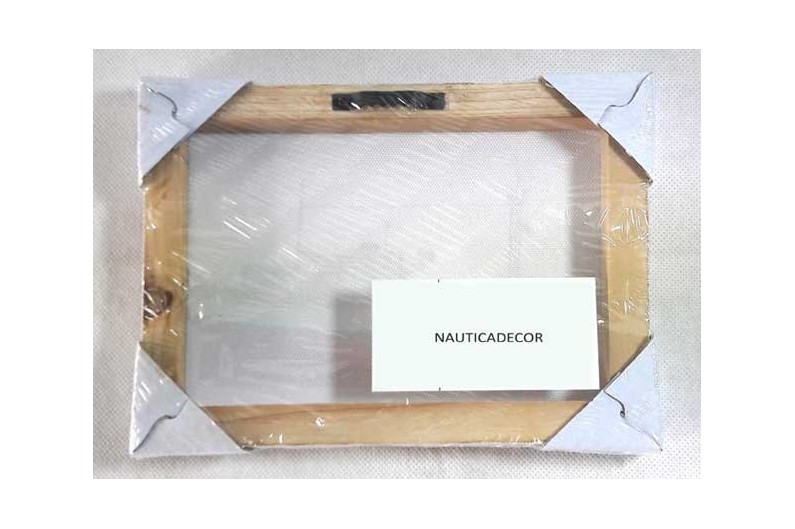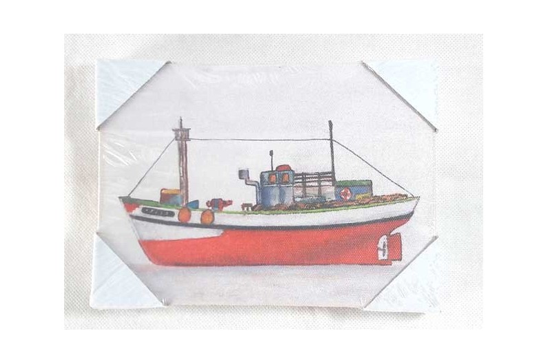 Cópia da pintura do marinheiro. Reprodução de uma pintura de barco marítimo impressa em um pano de algodão e montada em uma armação de madeira.
