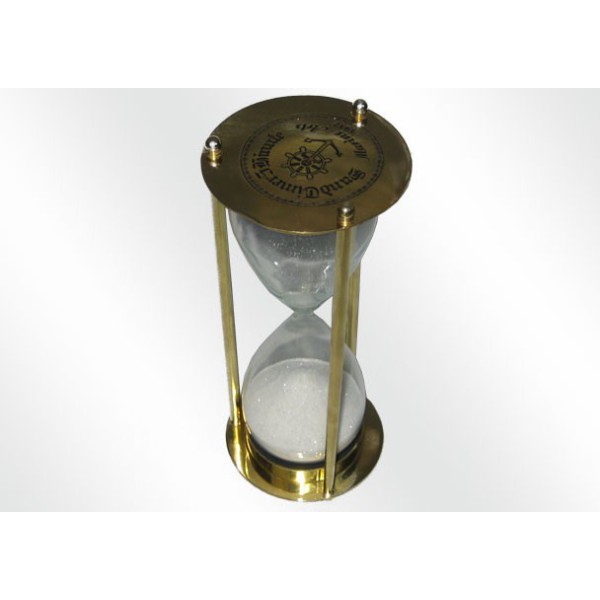Réplica bonita de uma ampulheta, feito de latão polido, areia branca duração i 5 minutos. Seu uso deve ser meramente decorativo.